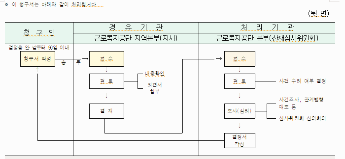 5. “결정을 안 날”이라 함은 공단 소속기관의 불승인(또는 부지급, 납부고지) 등의 결정서를 받은 날을 말하며, 이와 다를 경우에는 부득이한 사유가 있었다는 객관적인 증거자료를 함께 제출하여야 합니다.