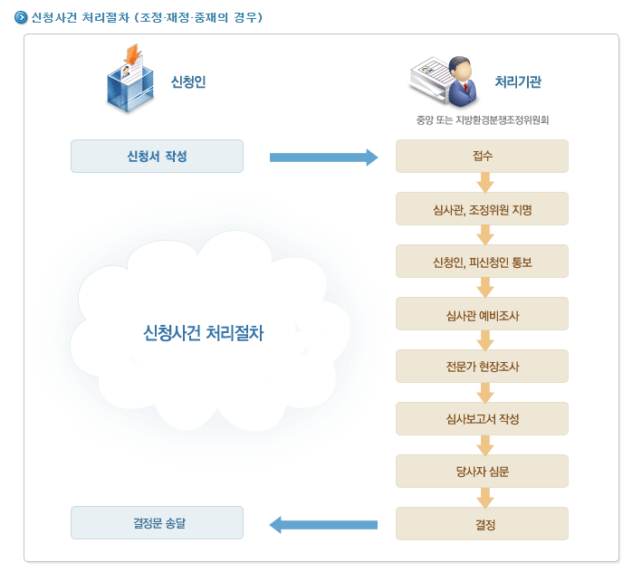 환경분쟁조정처리절차는 다음과 같습니다.